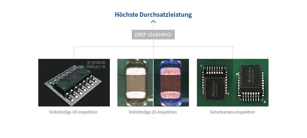 AOI von Mirtec realisiert Hochgeschwindigkeits-Inspektionen mit größter Präzision durch Weitwinkel-FOV unter Nutzung hochauflösender Kameras, einem Hochgeschwindigkeits-Bildübertragungsstandard von CoaXPress sowie Datenverarbeitung mit Server-Klassen-PCs. Zusätzlich wird durch Nutzung eines Linearantriebsmotorsystem als Antriebssystem für die Ausrüstung eine Wiederholungsgenauigkeit sicherstellt, die dem Post-Halbleiterprozess entspricht.