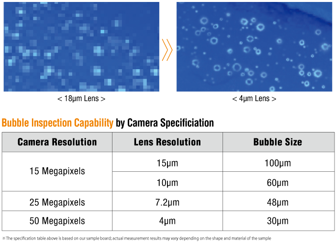 Zur Gewährleistung der Präzision haben wir in das GENESYS-CC System eine ultrahochauflösende 50MP-Kamera mit einer 4µm-Präzisionslinse integriert, die eine mühelose Erkennung von Blasen mit einer Größe von nur 30µm ermöglicht.