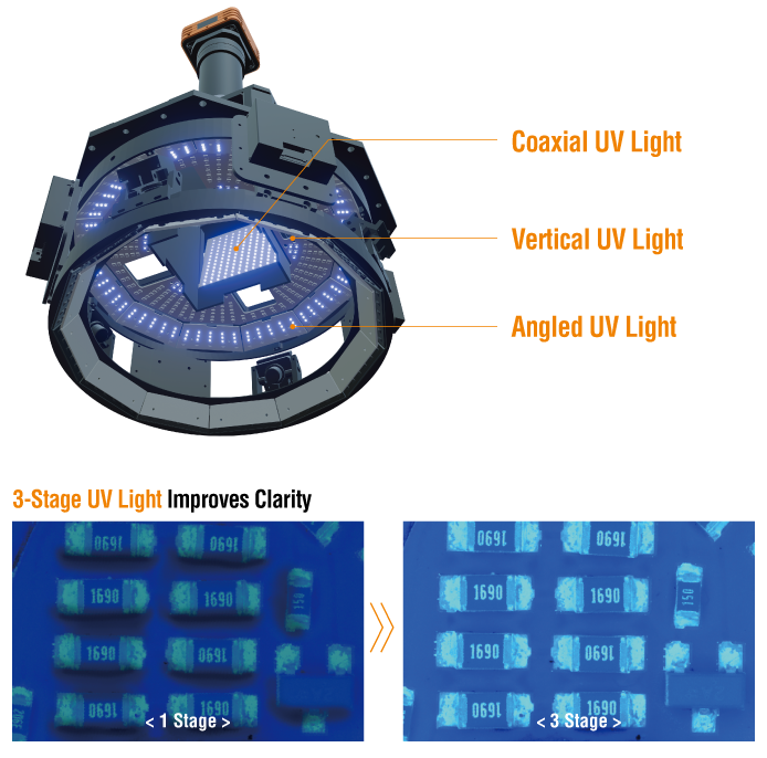 Das GENESYS-CC bietet jedoch eine mehrwinklige UV-Beleuchtung, die eine klare Bildgebung und eine hochpräzise Defekterkennung gewährleistet.