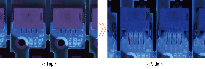 Wenn unbeschichtete Bereiche an der Seite eines Chips, an Anschlüssen oder Lötstellen auftreten, Beschichtungsspritzer an unerwünschten Stellen entstehen oder sich Blasen und Risse bilden, erkennt die 18MP-Hochauflösungs-Seitenkamera diese Beschichtungsfehler präzise.