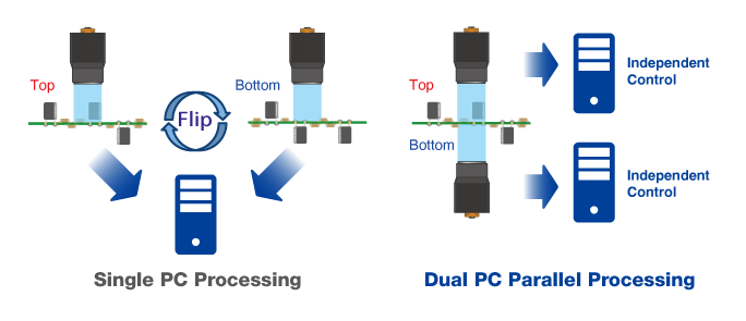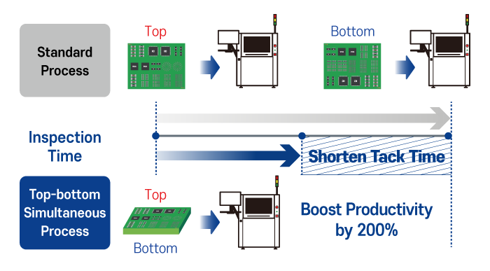 The MV-6TB enables simultaneous top and bottom inspection within a single system, eliminating the need for sequential inspection processes.