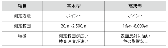 透明体の厚さを検査できる特殊センサーでコーティングやフィルムの厚さを検査できます。