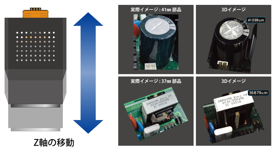 光学系Z軸駆動系とGPUオプションを結合することにより、ミルテックの3DAOIは高い部品の検査範囲を45mmまで増加させることができます。
