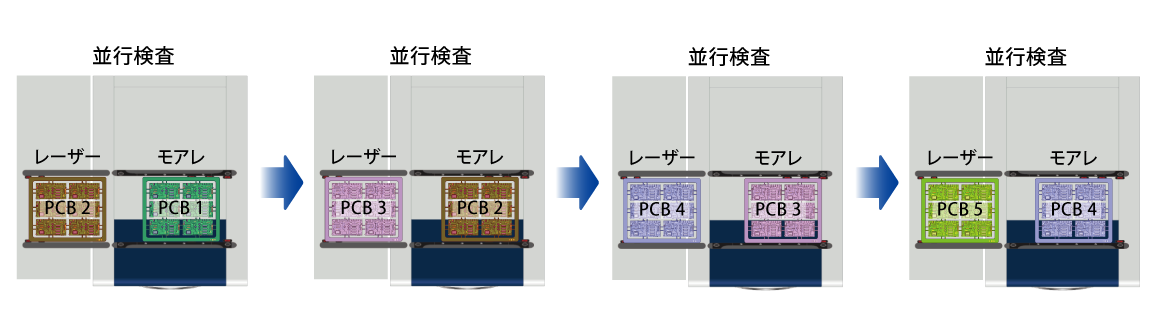 内部反転器による両面PCB検査(オプション)内部反転機を設置することで、別途の反転装置なしに検査機内部で両面PCBを簡単に検査することができます。