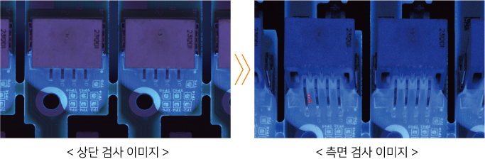 GENESYS-CC에는 18M 고해상도 측면 카메라를 장착할 수 있으며, 이를 통해 칩, 리드, 솔더, 커넥터 등의 측면에 발생할 수 있는 코팅 불량을 검출합니다.